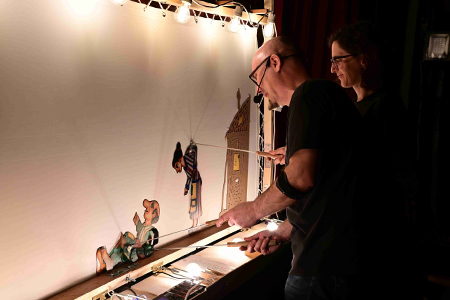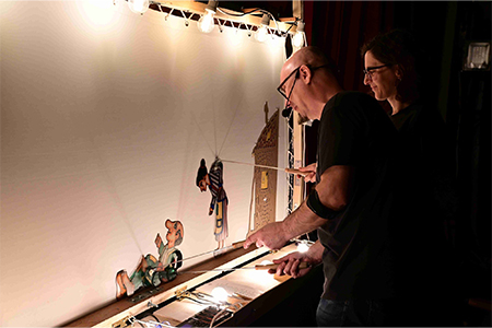 Η βοηθός σκηνής Νατάσα Μιχαηλίδου είναι μουσειολόγος και υλοποιεί – μεταξύ άλλων – τα εκπαιδευτικά προγράμματα για το θέατρο σκιών «Η ζωή της σκιάς», «Τα παραμύθια του Καραγκιόζη» κ.ά.